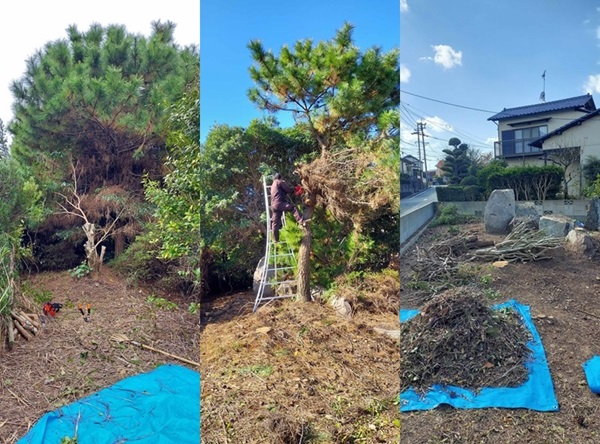 すべてを地面の高さでカットということではなかったので、植木職人も含めて作業いたしました。
